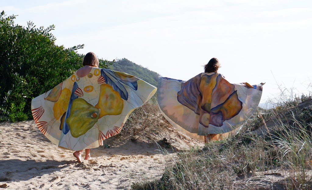 The Portuguese term “Capas” refers to a work series of capes called Parangolés by Brazilian artist Hélio Oiticica. The Bivalvia Capas can be activated by wearing them.