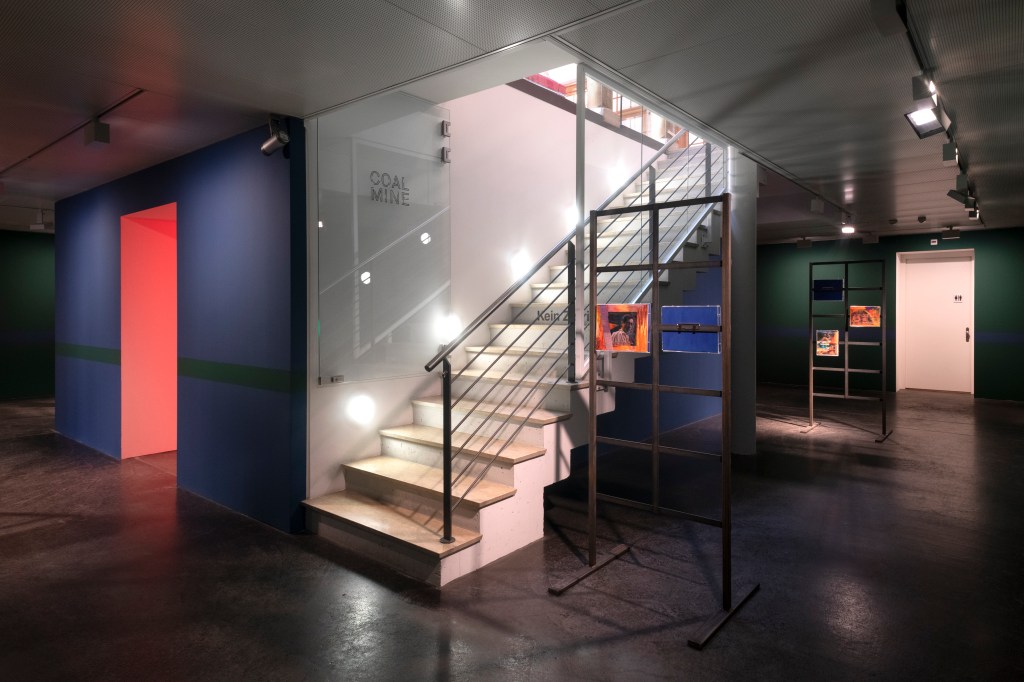 As a sort of guide, a colorful strip on the walls runs through all the exhibition spaces. It is a reference to literature and to the Suhrkamp Bibliothek (library) book series published by the renowned German publishing house of the same name. Bound with covers designed by Willy Fleckhaus featuring the iconic ribbon are those books that have been included in the literary canon as classics of modernism. This nod to the Suhrkamp series is also a reference to the library, which is located at the Coalmine Café and contains hundreds of copies of the publisher’s books. This is because in 1951, the company Gebrüder Volkart AG with Georg and Peter Reinhart granted a loan to the publisher Peter Suhrkamp through the mediation of the author Hermann Hesse. In the following year, they became shareholders in Suhrkamp-Publishing House, which they remained for over 50 years.